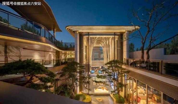 整个会所突破性地做了三层观景式设计,形成下沉式庭院+檐下游廊+亭台楼阁的立体格局,整体高差达15米,置身其中,蔚为壮观。