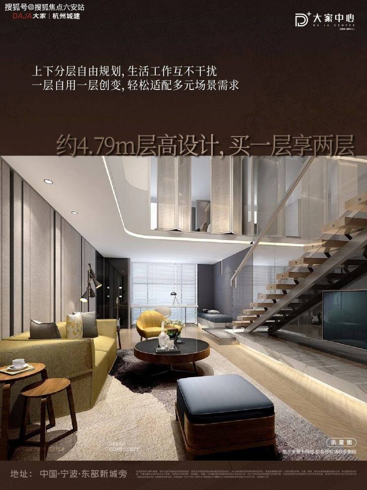 约4.79m层高,买一层享两层,私密与开放各得其所,“2+X”弹性布局