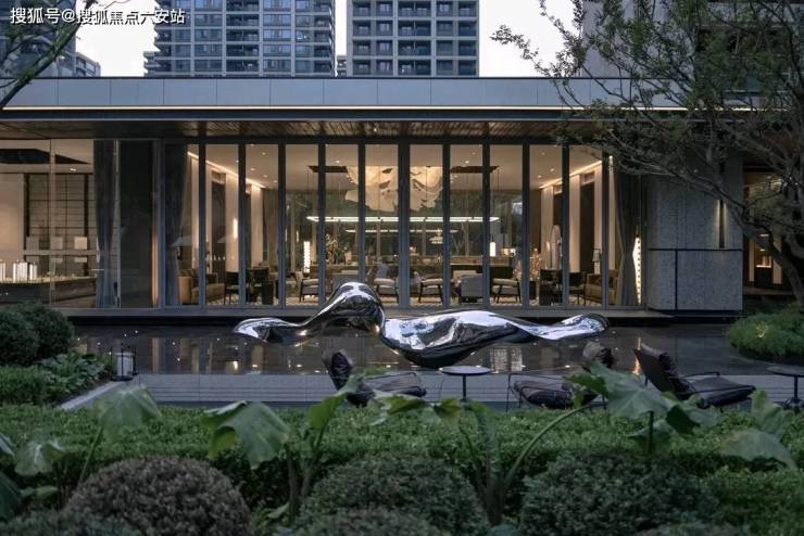 在建筑上,强调对称,突出轴线,充分传达了建筑自然、挺拔的气质。以极简的形态、“消隐”的立面设计,再配以整体平和舒缓、自然雅致的色调,呈现出不同于传统建筑的轻盈、通透质感,展现对美学的高度追求。外立面采用大面积玻璃镶嵌金属线条等现代元素,整体为银灰色系,有强烈的对称和秩序感,高级感拉满。