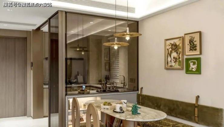 厨房与餐客厅之间巧妙配置隔断玻璃墙