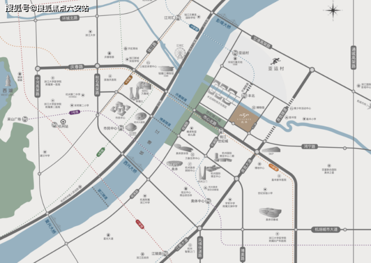 2横:奔竞大道、机场高速,纵向串联滨江核心区与萧山国际机场,驱车约20分钟即达,商务出行高效无忧;