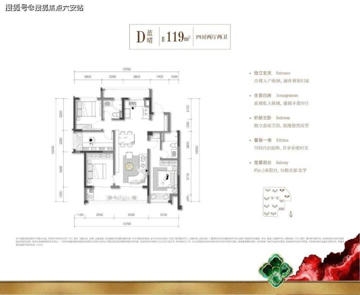 · 119㎡精致四居:边套南厅舒适格局,6.5米阳台无界连通餐客厅;套房式主卧带独立衣帽间,直接提升居住质感;