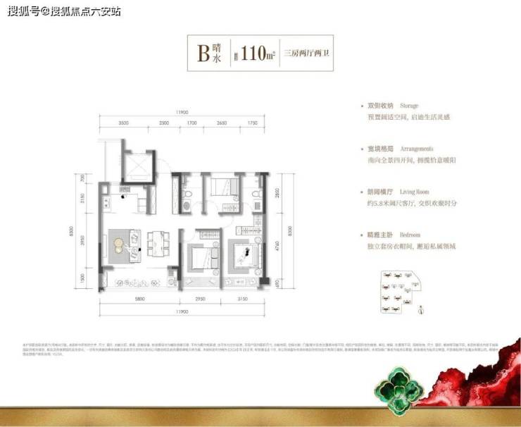 · 110㎡惬意三房:重塑市面同等户型南向尺度,四开间朝南+5.8米阔尺餐客厅,双侧收纳兼顾美学与实用;
