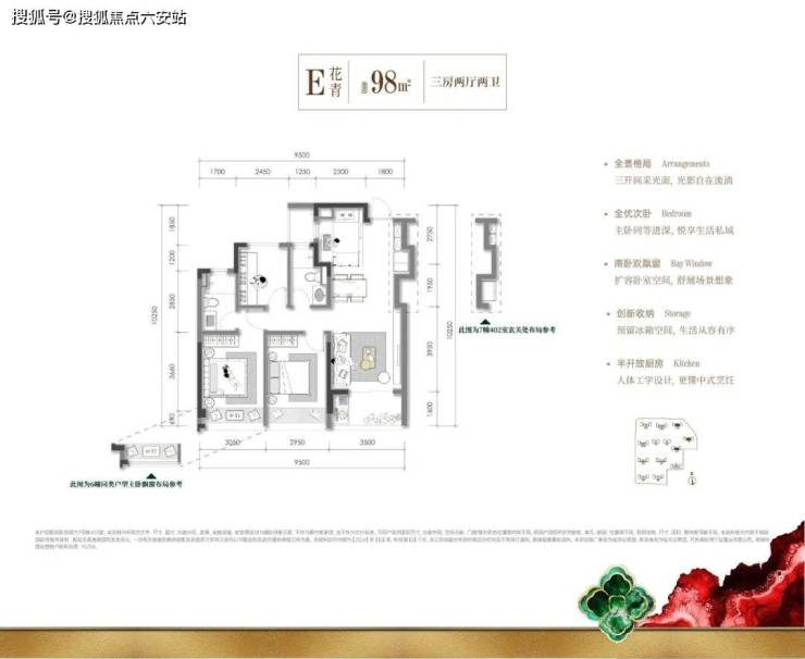 · 98㎡百平内稀缺小户:S墙设计释放玄关、厨房、客厅的储物空间;库式入户玄关+半开放式厨房+三开间朝阳格局,让小空间也能“越住越大”;