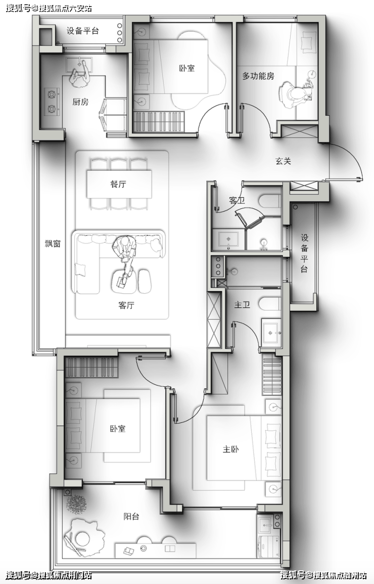 不仅做到了大边厅+四房,而且还带一个进深约2米的转角阳台(很多豪宅阳台进深也不过1.8米),就像自带一座空中花园。