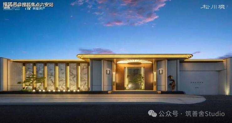 大门徐徐开启,步入序厅,眼前豁然展现《松阁观潮图》所蕴含的“动静相依”东方美学意境。定制套石的龙粼照壁在波光粼粼中熠熠生辉,构筑起松川境独有的文化印记与精神象征。松之静谧与潮之壮阔在此完美融合,每一步都隔绝了门外的喧嚣,实现了从纷繁世界到宁静家园的优雅过渡。