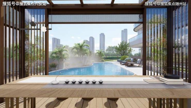 同时,在“松与云”的围合式布局里,小区的公区空间则以水景、松柏、陷入式地景园林为中心,利用弧线元素和风雨连廊串联起小区私享的豪华公区:
