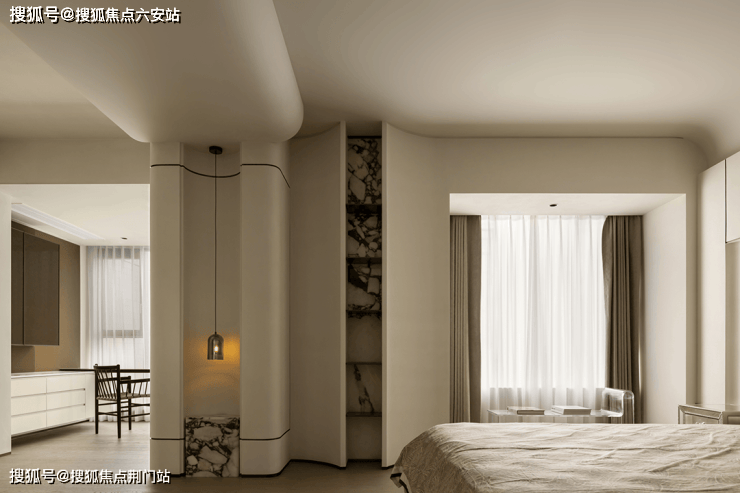 这样的排布方式,让潮映望月府拥有了足够开阔的楼间距,楼与楼之间显得特别舒朗。潮映望月府专门请来了曾执笔西溪雲庐、金鳞府、传宸府等豪宅的 绿城九米设计院,担纲建筑设计。