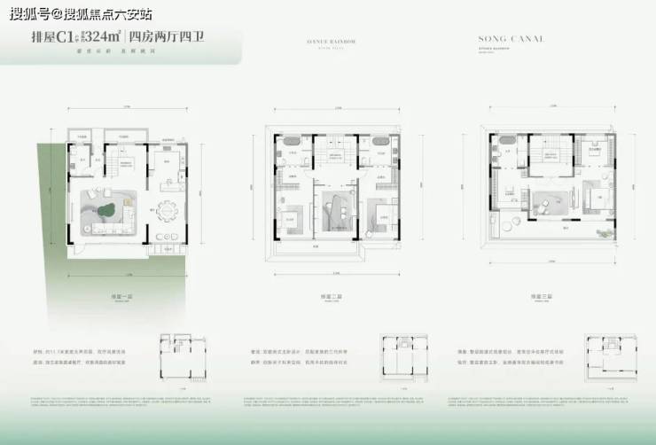 金帝河印府叠墅:建面约285-379㎡低密排屋、建面约136-176㎡宋风院墅