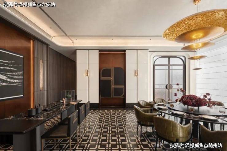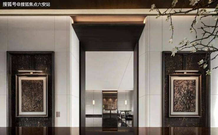 为了实现尊贵雅致的归家仪式感,打造“五境归家”动线,约37米延展面的府院式大门、约4米挑檐星空顶及尊贵酒店式落客和parda绿奢石,勾勒出每一步皆静奢的归家质感。而在入户电梯厅,经典纹样的瓷砖拼花,搭配雪山银狐岩板和精美壁灯,让业主的每次回家都被温馨氛围包裹。