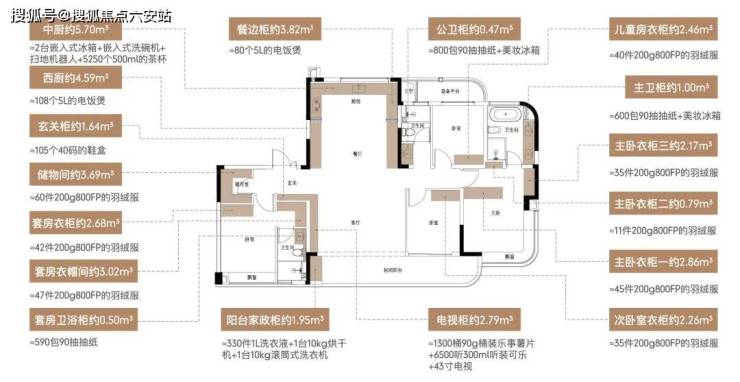 秩序,是高端生活的另一重内涵。建面约185㎡湖居大平层以系统化思维构建了约42.39m³的全屋收纳体系,相当于多出一间房的储物能力,从容涵养家的整洁与大气。从玄关约1.64m³的独立衣帽级收纳,到中西厨约14.11m³的米其林后厨规格储物,再到卧室区约16.24m³的精细化分区配置,每一处皆针对生活场景进行专业规划,让物品各得其所,也让居者真正实现“纳物有方,生活从容”。