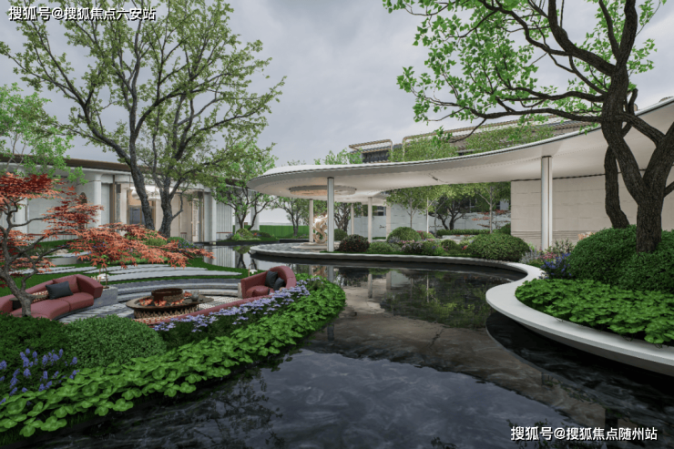 项目园林汲取西湖“虎跑静谧、柳浪闻莺、太子湾缤纷”的造园精髓,打造“五幕十景”的沉浸式游园体系。园内规划约2800㎡阳光草坪、超2000㎡中心水景与戏水池、约560㎡网球场及300米环形跑道。