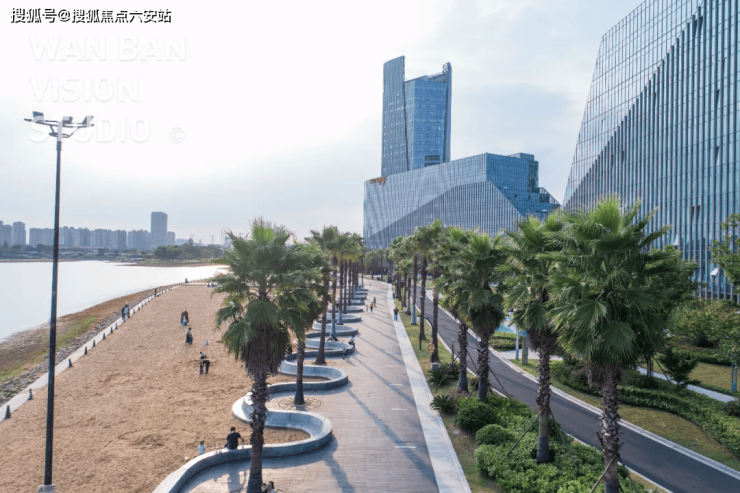 项目南向直面金沙湖主湖区,直线距离约300米,464亩湖面、棕榈沙滩、环湖跑道尽收眼底。高层公建化立面搭配大面积玻璃,将湖光框入室内;排屋退台设计引星空入怀,实现“露台与湖波对望”的诗意栖居。
