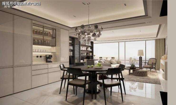 作为视觉焦点的【云奕玺冠】美学塔冠,以皇冠般的造型矗立楼宇之巅,既延续了杭州奢宅翡云润府的公建化立面基因,又以几何线条的现代解构重塑城市天际线。室内空间则采用莫兰迪配色的艺术化表达,LDKB一体化洄游设计打破传统格局,使餐客厨阳台形成无界贯通的奢阔场域。