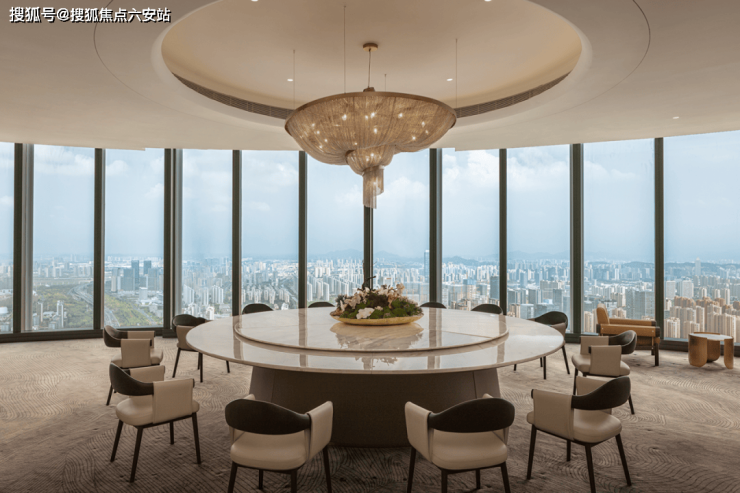 位于60层的云端会所,天幕茶室、思享会议厅、总裁办公室、云端私宴厅等功能场域,专为杭州层峯人士量身定制,充分满足高规格的接待需求。窗外俯瞰,西湖、钱塘江、滨奥三个时代的杭州精粹以及一系列流光溢彩的城市途径,跃然眼前。