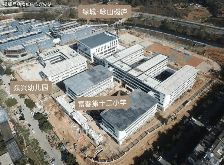 一街之隔的富春第十二小学(在建),富春六小,郁达夫中学(达夫校区),富阳第二中学等