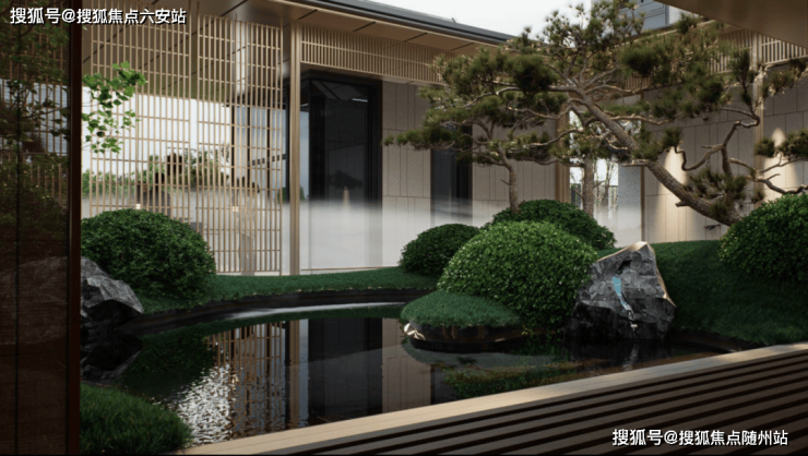 建筑与景观的和谐统一是项目的又一亮点。借鉴杭州郭庄造园手法,金云院打造“三进九景”的景观结构。选用百年罗汉松、红枫等名贵树种,配合宋式亭、杂木风绿化等现代手法演绎水墨山水画境,实现可游、可居的诗意栖居。
