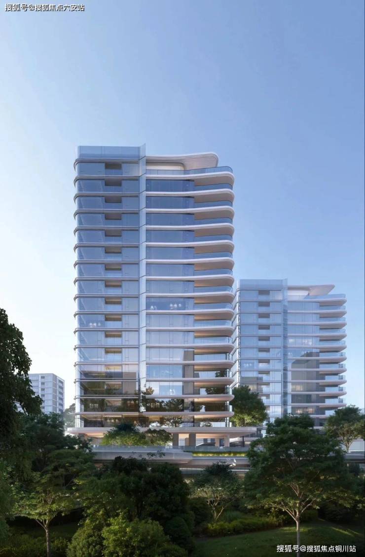 建筑美学:双曲面倒弧工艺石材幕墙模拟钱塘江潮水动势,蓝灰色LOW-E玻璃幕墙反射比低于0.16,南偏东15°错位布局确保户户观江,北立面创新采用全面屏设计颠覆传统住宅“重南轻北”的惯性。