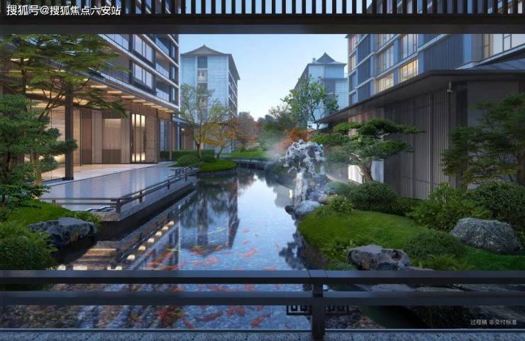 项目景观规划精致,园林设计灵感来源于临平山上塘河,引山水入园,演绎宋式精工居所。整体遵循宋代江南水乡的古城肌理,展现大宅的隐奢调性。项目内部规划有三进二庭五园的山水轴布局,两轴九景四时的极致意境生活。巨大的锦鲤池更是将恢弘的“中式气场”拉满,道法自然、天人合一的设计理念让人仿佛来到了红楼梦中的大观园。