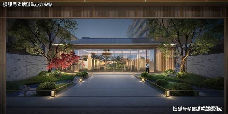 项目的主入口和下沉式庭院,同样是一幅充满人文魅力的景观画卷。山水叠石,黑松,鱼池,飞瀑,寓意十全十美的十扇屏风窗和屋顶的金线葫芦,将传统人居的吉祥美好悉数呈现。