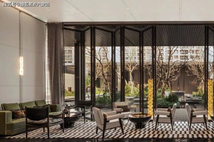 中海·璞翠云集 入户采用酒店式大堂错落排布,并通过营造相对私密小空间营造出宁静而舒适的空间氛围。更贴心的是,酒店式大堂与住宅楼之间还专门设置了一处门庭景观—— 泗水归堂,让城市与家之间别有洞天。