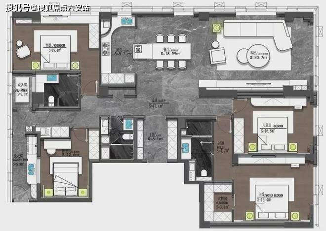 超50㎡主卧豪华套房、27㎡双衣帽间设计,双阳台设计,尽显主人尊贵。