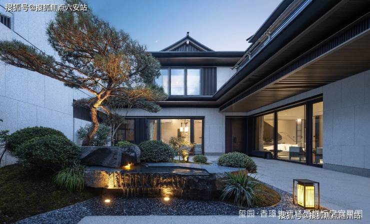 在建筑营造上,由gad张微老师执笔,延续和家园“章法天成,自然而然”理念,玺园·长流取法宋代郭熙的“三远论”,结合正脊、戗脊、博风板、悬鱼、鱼鳞瓦等经典中式元素,并巧妙运用石材、玻璃、铝板等材质,诠释中式建筑的虚实相生,平远雅致,带来丰富的视觉体验。