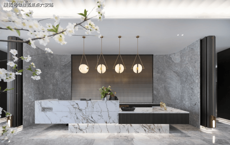 大堂采用双层挑空的设计手法,打造建面约860m朗空间,约9.7m层高,阔绰尺度嵌入设计感满满的砚台驻足于此,犹如观赏正在作画中的婉转墨迹。