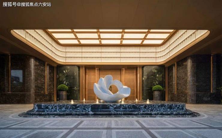 主入口门头宽约66米,高约10.6米,三段式透光云石吊顶宛若华盖加冕,四根芬迪白奢石立柱,将大宅序幕徐徐拉开。