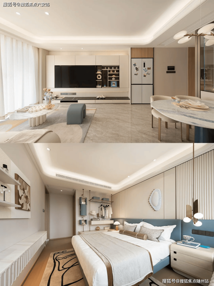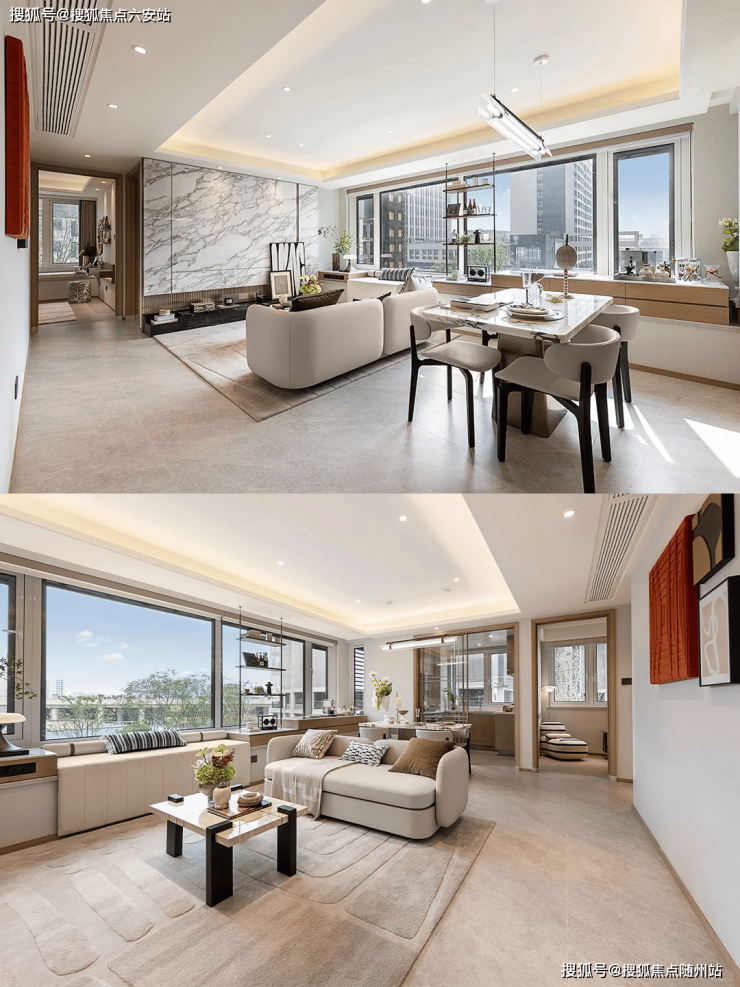 巨幕横厅搭配南向双套房,主卧独立衣帽间+观景飘窗,诠释改善生活的从容尺度。