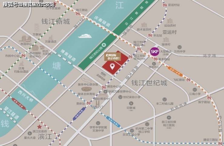 【交通 】:地铁2/6号线钱江世纪城站、6号线奥体中心站直线约500米;900米庆春隧道直达钱江新城CBD,3公里内上机场高架速达萧山国际机场。