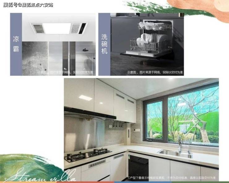 其次是厨房间,洗碗机+油烟机+燃气灶,同样是高配的三大件。除此之外,还加装净水系统和头顶凉霸。