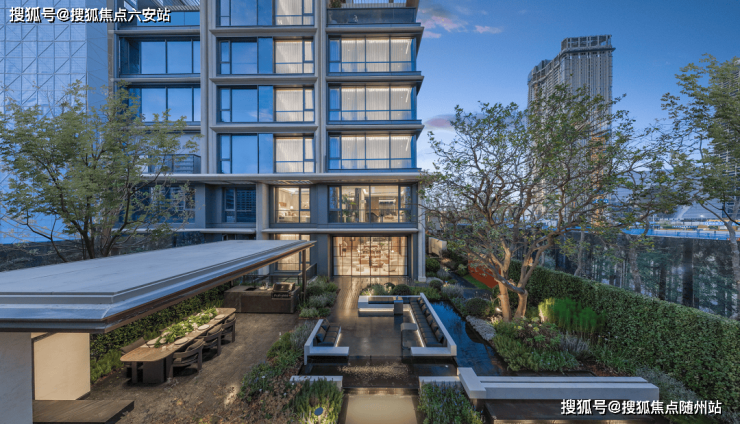 项目以“超级底盘”理念规划6000㎡中央景观,打造浮光墅屿、垂直绿洲等八大主题园区,借景云门公园(约30万㎡)形成“城市绿肺”;35%高绿地率与8级落瀑“云崖悬厅”重塑自然与现代的共生关系。