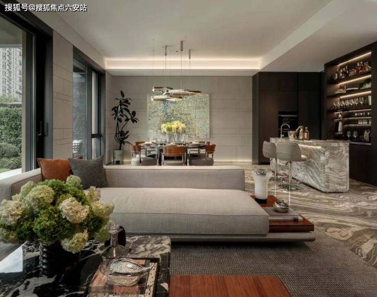 青岚府的四季被设计成可居住的《岁时记》。春分时节,定制铜灯笼会投影出海棠花影;夏至午后,智能雾森系统在廊下制造《听泉图》的氤氲;秋分时,银杏叶飘落触发地面感应灯,模仿《秋庭戏婴图》的暖色调。