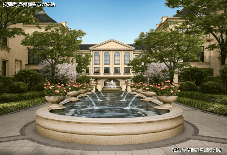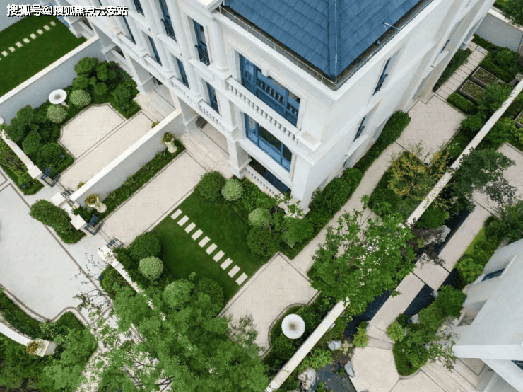 项目采用经典的三段式立面设计,融合了中国传统院落布局与法国枫丹白露宫的审美理念。天然浅米黄石材、坡屋顶、老虎窗等法式建筑经典元素的运用,让整个社区洋溢着浓厚的艺术气息与历史底蕴,成为绿城造墅技艺的集中展示。