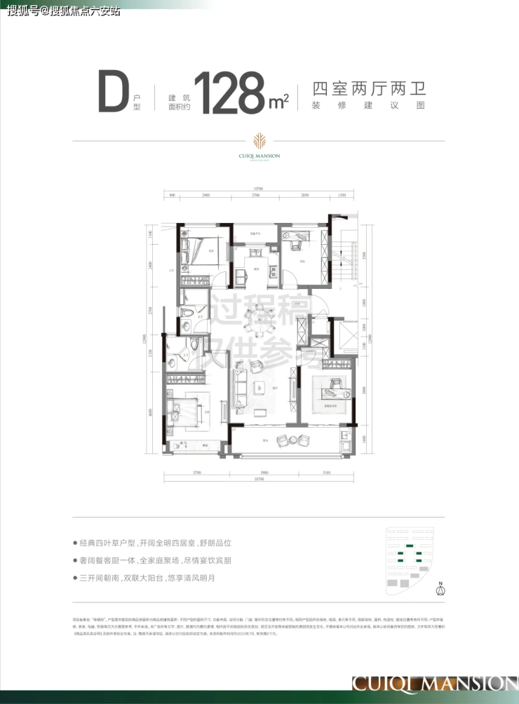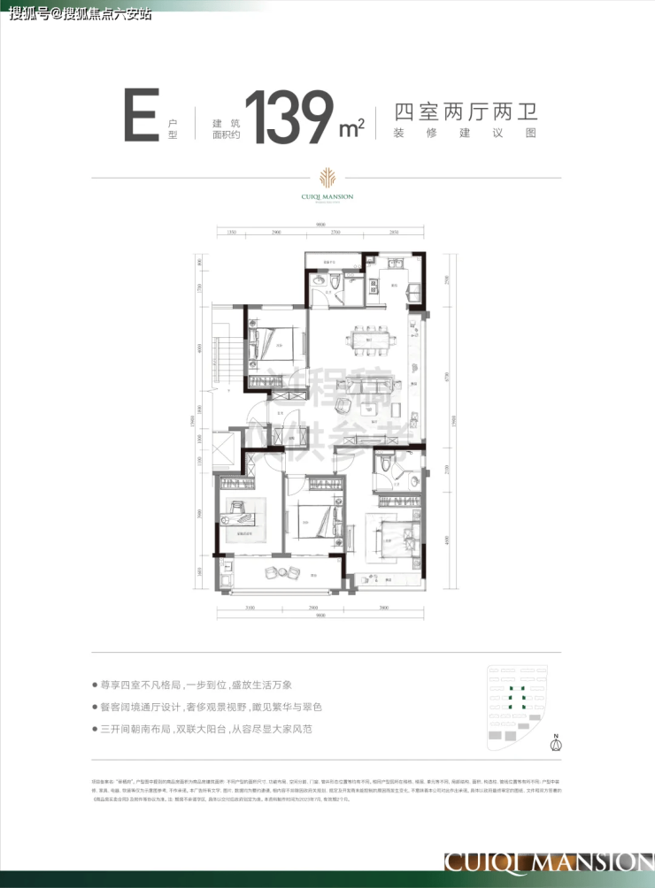 139㎡四房边套:37㎡横厅衔接6.7米飘窗,南北通透,空间媲美150㎡户型。