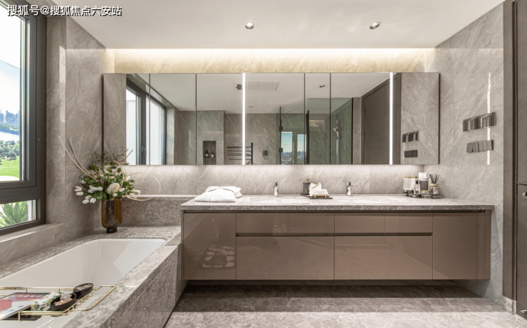 设计师为居者未来生活充分留白,让空间更具生长性。步入主卧室内,约3.6米大面宽可轻松容纳梳妆台、大衣柜等家居,让每一寸空间与光为舞。双台盆设计、极简美学浴缸,于浪漫灯光下饮酒沐浴,触手可及皆是人性化生活的韵味,营造一场舒展身心之旅。(上述出现的空间尺寸、家居设计方式均来源于190㎡销售展示间,最终以政府部门的批准文件和商品房买卖合同及补充协议约定为准)