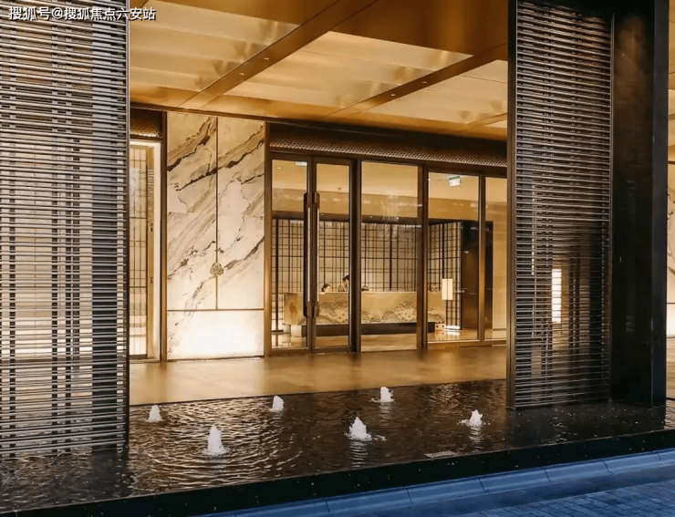 地库连接着会所,入口的玄关充满仪式感,水景结合天光、月光灰的石材背景和地面的马蹄石营造出一种古朴自然的氛围。它的归家动线也十分考究,传统的地库大堂进来后直接到达电梯厅,而瑞玺则是做了一段具有艺术氛围的过渡空间让归家的心绪先沉淀下来,实现外部喧嚣到居家宁静的完美切换。