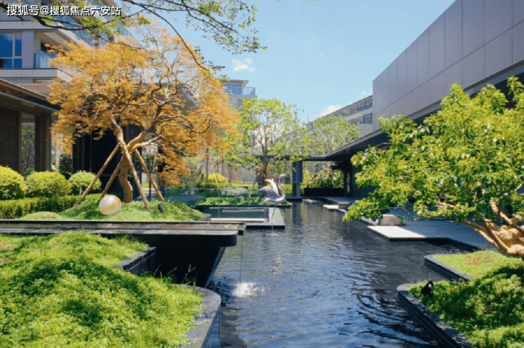 中心水院,如西湖水波,似江山如画。游廊漫回,亭台水榭,草木葳蕤,尽显东方雅韵。高层绿意疏朗,展现静谧雅致氛围;中层巧妙搭配特色树种,恣意蔓延;低层以不同花木勾勒,芬芳弥漫,营造“沉醉不知归路,误入百花深处”的美好意境,既有自然的艺术,又有生动的意趣。