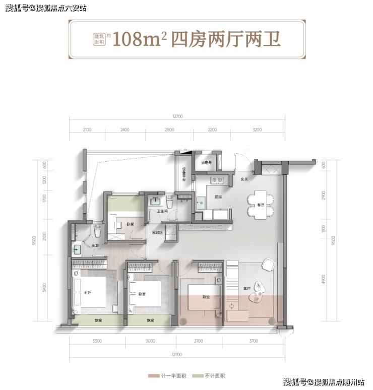 低密高层 108㎡(4房2厅2卫)-139㎡(4房2厅3卫)近100%使用空间