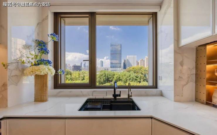 再比如,从公区到室内,10多种甄选奢石镶嵌在不同位置,单元大堂地面的大理石拼花以及整块上墙的稀有雪山兰奢石;卫生间洗脸盆台面用的是皇家白玉石材;户内玄关墙面面和电视机背景墙选择的是安第斯雪景奢石,足以证明开发商的用心。