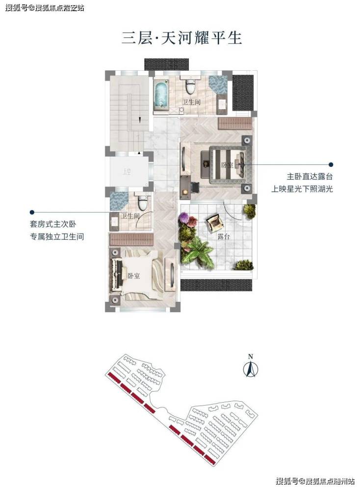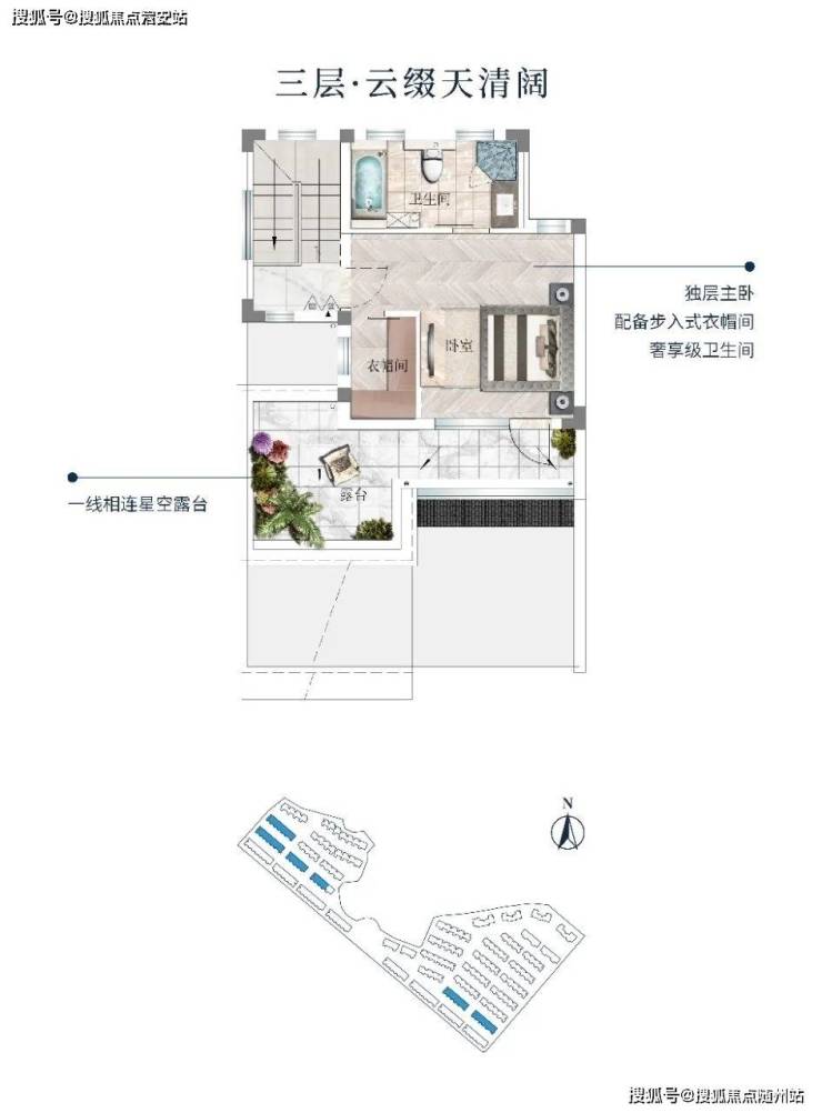 三层天河耀平生,白云藏楼阁。套房式主次卧,独立卫浴悉心兼顾每一个起居行为习惯,全明户型,满足对阳光和通风的渴求,主卧直达星光大露台,纳自然之形,造空间之境。