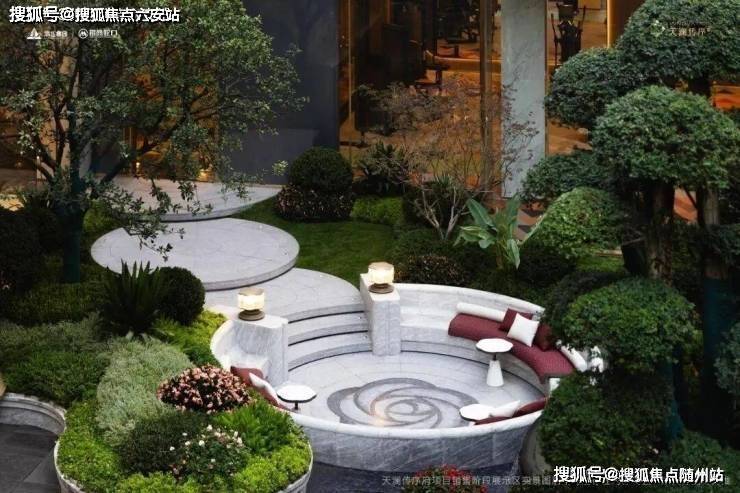 从“蓝宝石”戏水池到下沉式庭院,再到空中花园,天澜传序府把景观与功能完美结合。恒温泳池的落地窗外是如画的下沉式庭院景观,健身房一整排跑步机前同样享有优美景致,实现度假式居住体验。下沉式庭院中的树木都呈现“非常浓密”的形态,几乎每一棵都有“专属花盆”,修剪得层层叠叠,从恒温泳池的落地窗往外看,就像欣赏精致的“巨型盆栽”。