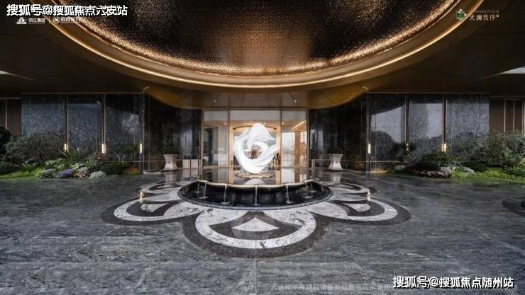 殿堂级归家礼序。天澜传序府以殿堂气度重塑归家礼序,入口处打造宽约35米、高约6.5米的“寰宇云厅”,如殿堂一般气势恢宏,两侧以挪威蓝翡翠石材景墙对仗而立。