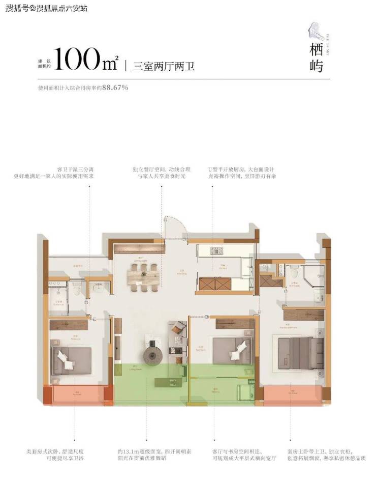 🔥高约100%得房率、迭代升级户型,89㎡-104㎡三房甄选作品115㎡-132㎡四房改善作品🔥