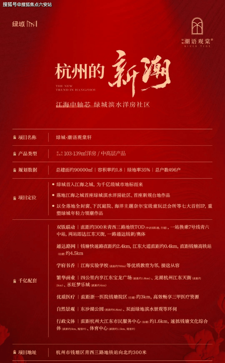 绿城·潮语观棠轩是绿城集团首入杭州钱塘区江海之城的项目,整体表现较为突出,以下是综合信息后的分析:
