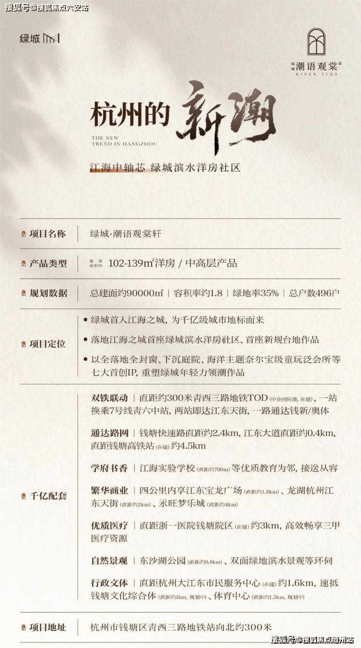🔝🔥— ⑉ıl⑉杭州钱塘大江东江海之城板块核芯【绿城潮语观棠轩】6-7F 洋房,13-17F 中高层,直距地铁8号线青西三路站约300米⑉lı⑉—