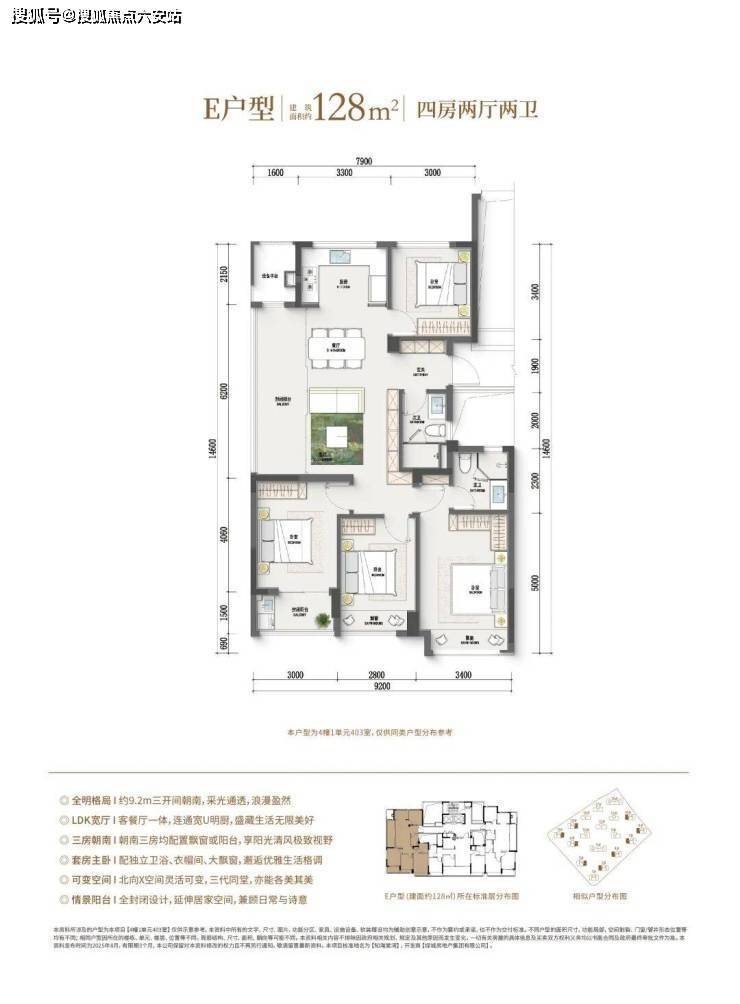 知海棠建面约139㎡户型,以“LDKB一体化”设计打破边界,让厨房、客餐厅、阳台融为贯通的整体,尤其是边套F户型,约6.3m全封闭阳台,形成一片家庭欢聚的开阔竖厅,将厨房美食烹饪、客厅孩子玩耍、阳台静心阅读等场景融为一体,打破传统的空间界限,让家的每一个角落都成为亲情的纽带。
