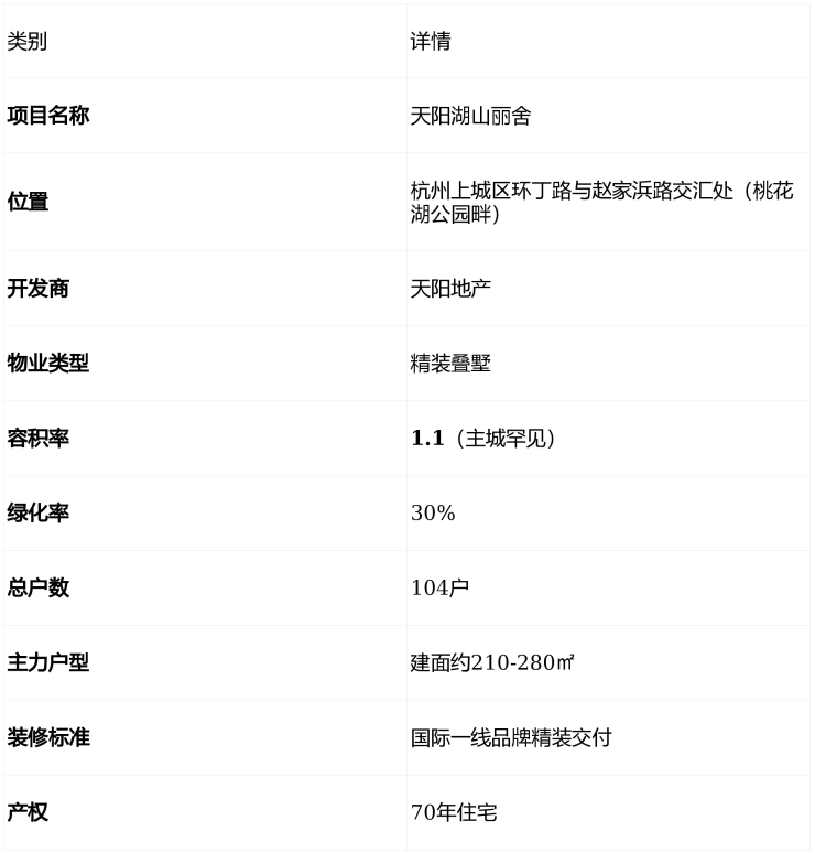 天阳湖山丽舍,踞守杭州上城区丁桥板块核心,以1.1超低容积率、纯四层叠墅形态与桃花湖一线湖景资源,重塑主城湖居标杆。项目仅规划104席精装叠墅,主力建面约210-280㎡,总价1200万起,为高净值人群定制“离尘不离城”的理想栖居地。