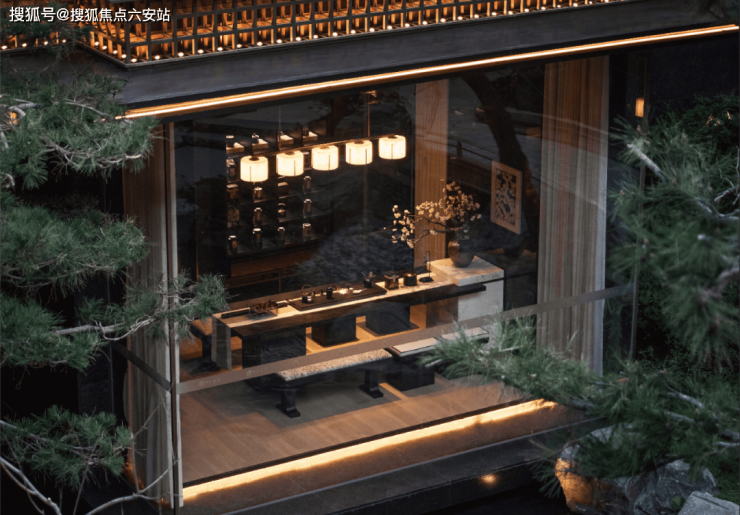 顶层茶室与露台营造山水意境,地下雅集空间木格栅、透光墙勾勒 “举杯邀月” 之境,夹层赛车展廊则平衡了雅静与动感。